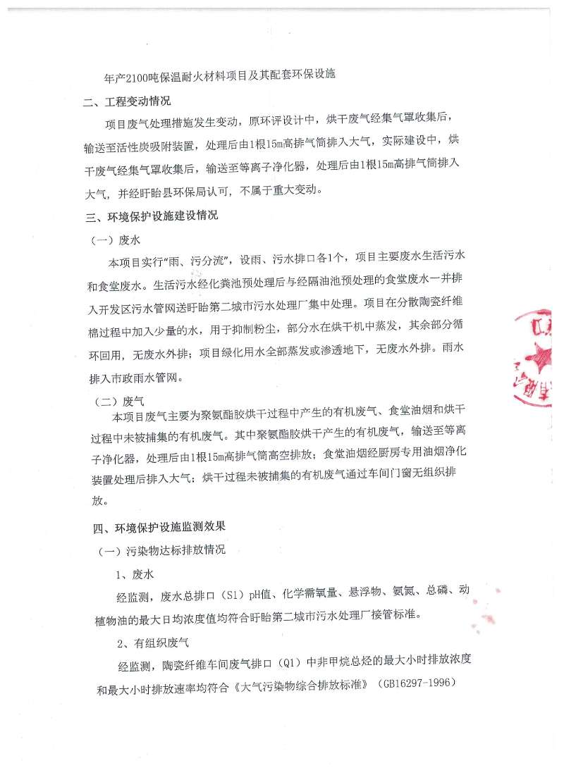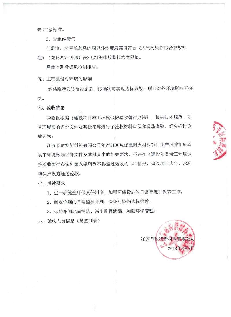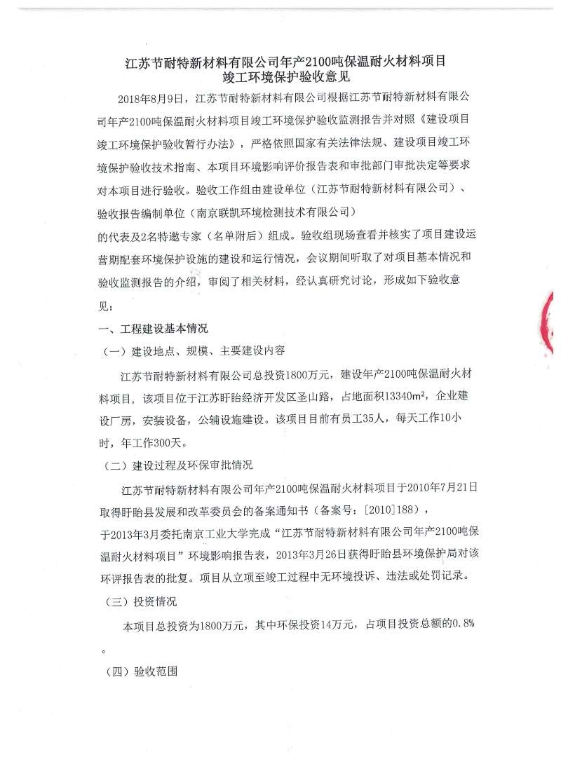 江蘇節(jié)耐特新材有限公司 年產(chǎn)2100噸保溫耐火材料項(xiàng)目竣工 環(huán)境保護(hù)驗(yàn)收意見